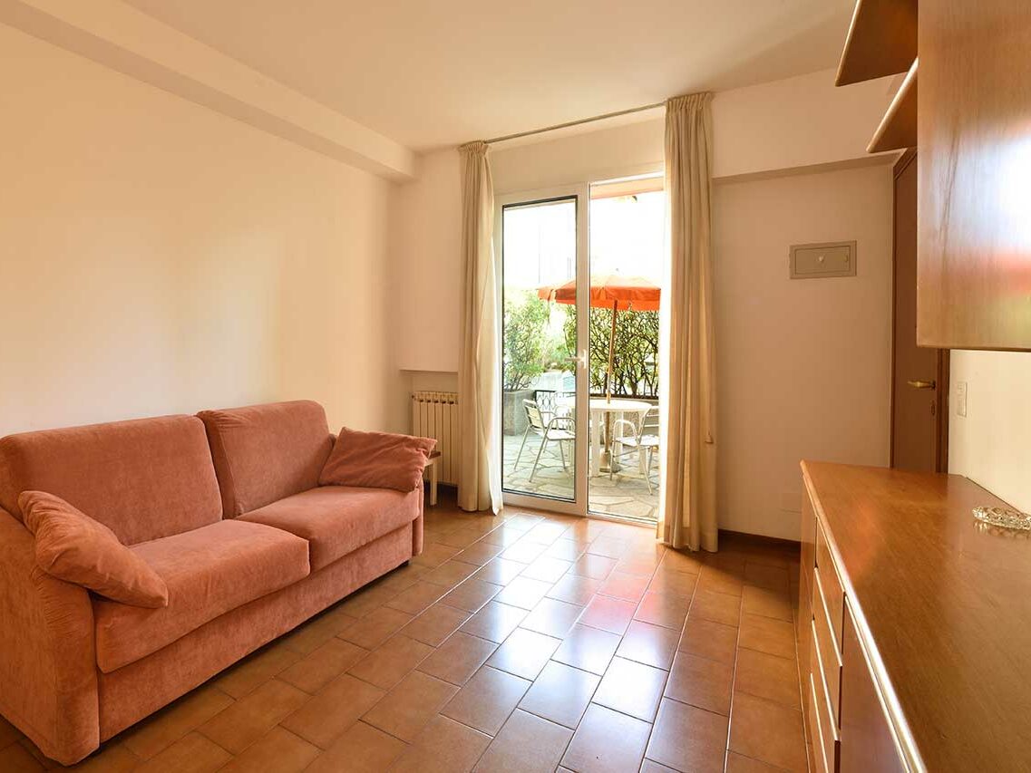 Each apartment has a practical, fully equipped kitchenette and a comfortable living room with a sofa bed and Smart TV, perfect for relaxing after a day at the beach or sightseeing.